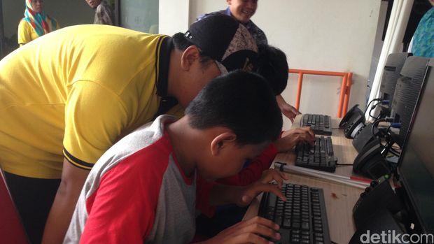 ![]() Suryo mendampingi salah sesuatu anak mengoperasikan kompyter (Foto: dian/detikHealth) |