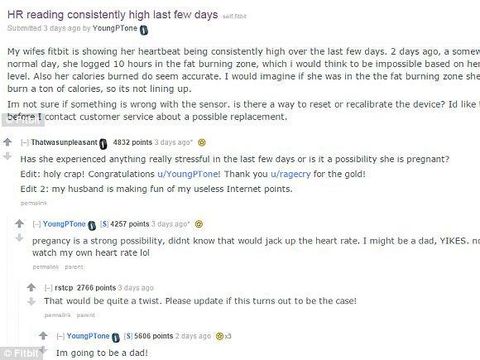 Karena kebingungan, ia pun menetapkan mencari jawaban lewat situs Reddit. Kepada pengguna Reddit lainnya, ia bertanya mengapa detak jantung sang istri yg terbaca lewat gelang pintar itu sangat tinggi.